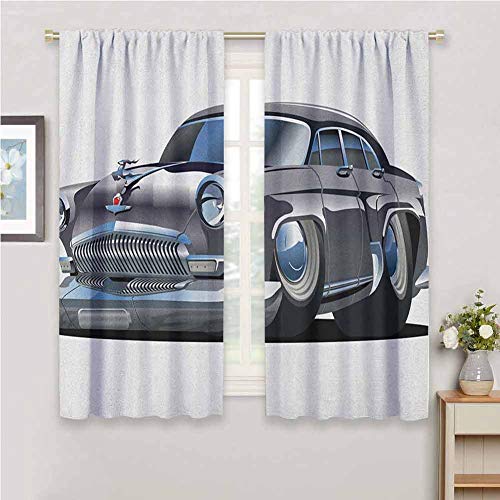 Cars Room Darkened Heat Insulation Curtain Retro Inspired Car Design with Asymmetric Tires Fast Car Speeding Cool Logo Living Room W54 x L84 Inch Silver Dark Grey Review