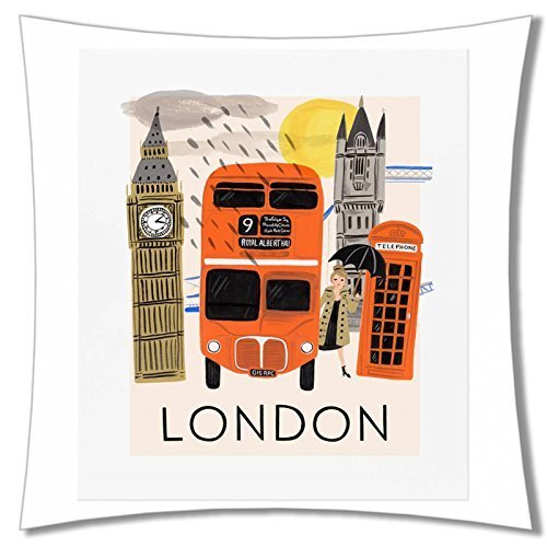 Lumimi ?Square Throw Pillow Case Decorative Cushion Cover Pillow Case Zippered Fashion London Big Ben Bus Telephone Lady Street ( 1818 ) Review