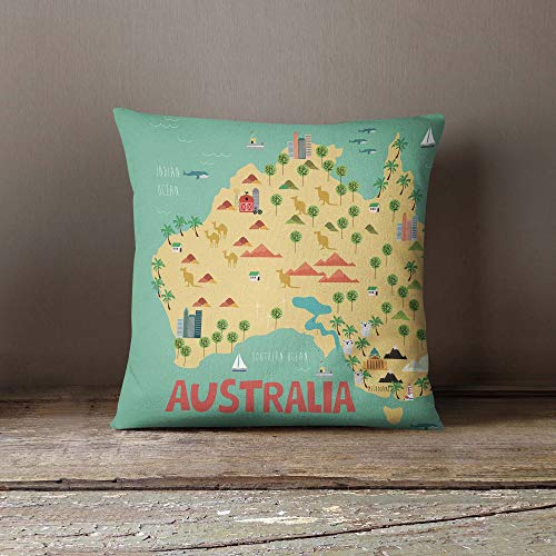 Lplpol Decorative Pillow Cover, Australia Pillow Australia Map Australia Gifts Australia Art Australia Decor Throw Pillow, Modern Pillows for Home Couch Sofa Bedding 16×16 Inch Review