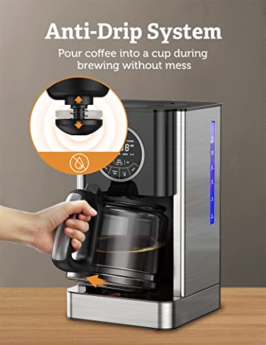 12-Cup Coffee Maker,Drip Coffee Machine with Glass Carafe, Keep Warm, 24H Programmable Timer, Brew Strength Control, Touch Control, Anti-Drip System, Self-Cleaning Function