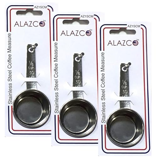 - At amazon.com you can purchase 3pc STAINLESS STEEL ALAZCO COFFEE MEASURING SCOOP 1/8 CUP - Kitchen Baking Cooking Measuring Scoop Spice Herbs Salt Sugar Flour Cocoa Protein Powder Keto Cream Scoop for only $8.67