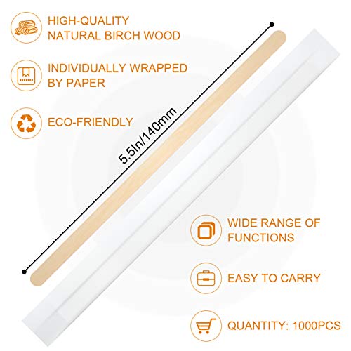 Amkoskr 1000Pcs Disposable Wood Coffee Stir Sticks Stirrers Individually Paper Wrapped Coffee Tea Beverage Stirrers Stirrings 5.5 Inch,140mm