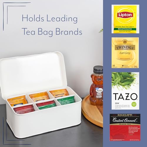 - SIZE: 9.25 inches long x 5.5 inches wide by 3.5 inches tall; sections are approx. 3 x 2.5 inches by 3 inches deep for 15 individually packaged or 20 loose tea bags each