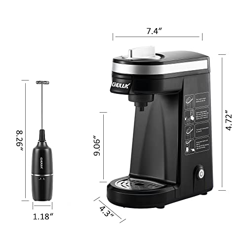 CHULUX Single Serve Coffee Maker Brewer with Milk Frother,12oz Personal Coffee Machine for Capsule Pod Ground Coffee,Fast Brew Tech for Coffee or Tea,Black