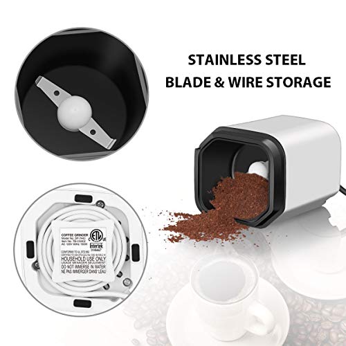 Coffee Bean Spice Grinder Electric – Stainless Steel Blade Grinds Coffee Beans, Spices, Nuts and Grains, 150 W Fast Fine Grinder with Safe Lids Lock, 12 Cups Large Grinding Capacity, Cord Storage