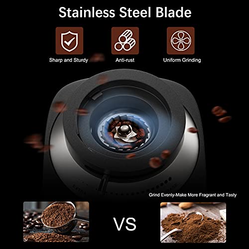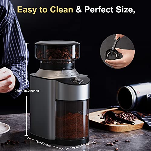 - 【COFFEE GRINDER WITH 19 GRINDING SETTINGS】 A nice day starts with the first cup of coffee in the morning. Electric burr coffee grinder with 19 grind settings,coarse,medium,fine,extra fine,meet the different demand of you. Enjoy the fresh coffee every time.