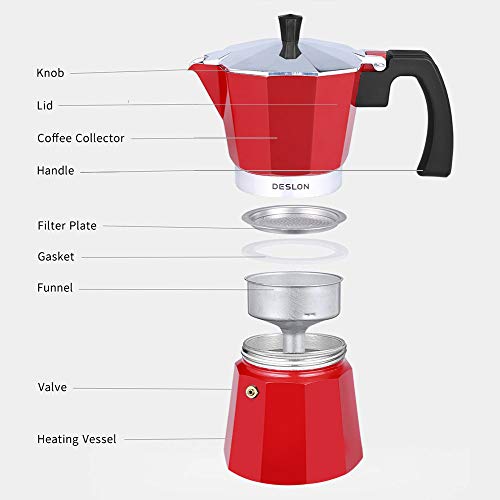 DESLON Classic Italian Style Espresso Cup Moka Pot, Makes Delicious Coffee, Easy to Operate & Quick Cleanup Pot,Moka Pot, 6 -Cup. Prices