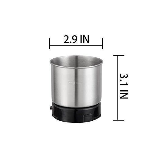 - Coffee grinder with Power 200W,120V,60Hz; 1.8 oz./50g capacity, yield up to 7 cups of coffee; Great for grind coffee bean,dried spices, nuts,grains.ginger, Garlic, onion, carrot and so on
