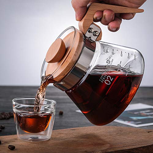 DUEBEL Pour Over Coffee Maker with Wooden Handle, 20oz High Borosilicate Glass Coffee Pot, Hand Drip Sharing Pot Filter Funnel Portable Coffee Maker Supplies with Base Prices