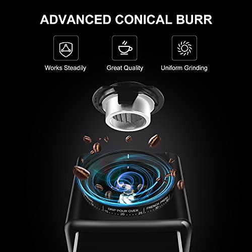 Electric Burr Coffee Grinder, Adjustable Burr Mill with 35 Precise Grind Settings for 2-12 Cup, For Espresso/Drip/Percolator/French Press/American/Turkish Coffee Makers, 120V/200W, Black