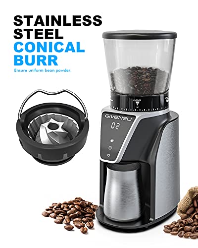 Are you looking for Electric Burr Coffee Grinder, GIVENEU Conical Burr Coffee Bean Grinder with 31 Grind Settings for 1-10 Cups, and Anti-static Ground Container, Perfect for Espresso, French Press, Cold Brew and More?