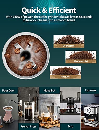 Electric Coffee Grinder Stainless Steel Blade Grinder for Coffee Espresso Latte Mochas, Noiseless Operation.GECGI140-U-1