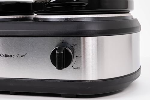 - COOKING SETTING: Specially designed for convenient serving. Triple slow-cooker, warmer, and server for entertaining family and friends. Each crock has its own heating element with three settings High, Warm and Low to keep your favourite dishes at their optimal temperature.