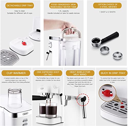 Are you looking for Gevi Espresso Machines 20 Bar Fast Heating Automatic Cappuccino Coffee Maker with Foaming Milk Frother Wand for Espresso, Latte Macchiato, 1.2L Removable Water Tank, 1350W, White?