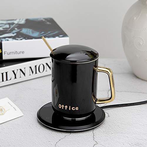 KRIPT Coffee Cup Warmer for Desk Rapid Heating Mug Warmer With Auto Shut Off Mode Included Flat Bottom Mug,Lid and Spoon Gen2 (black)