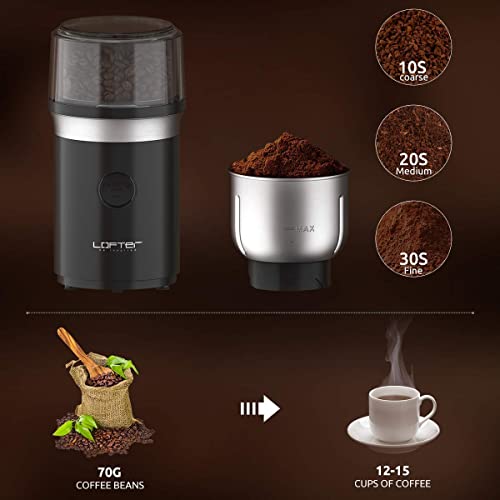 Are you looking for LOFTER Electric Coffee Grinder,200W Coffee Grinder With 2 Removable Grinding Bowls, 70G Capacity Portable Coffee Grinder with Safety Lock Lid, Suitable For Coffee Beans, Herbs, Seeds,Grains?