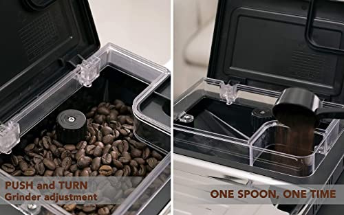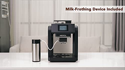 MEROL Automatic Espresso Coffee Machine, Programmable 19-Bar Pressure Pump Coffee Maker, Burr Grinder, with Milk Frother for Cafe Americano, Latte and Cappuccino Drinks, Black