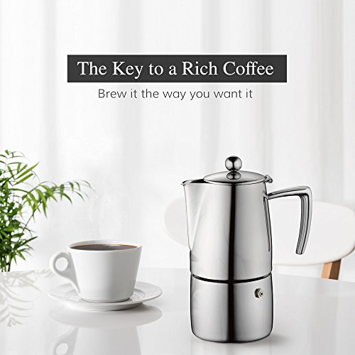 Are you looking for Minos Moka Pot Espresso Maker: Makes 6 Espresso Shots Suitable for Ceramic, Gas and Electric Stovetop – Stainless Steel With Flat Bottom and Heatproof Handle, Wear and Scratch-Resistant?