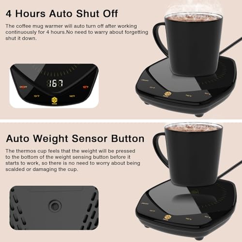 Mug Warmer, 25W Quickly Heating Coffee Warmer with Temperature 131°F/149°F/167°F Cup Warmer for Office Desk 4 Hours Auto Off for Cocoa Tea Water Milk Beverage(Gravity & Touch Switch) Prices