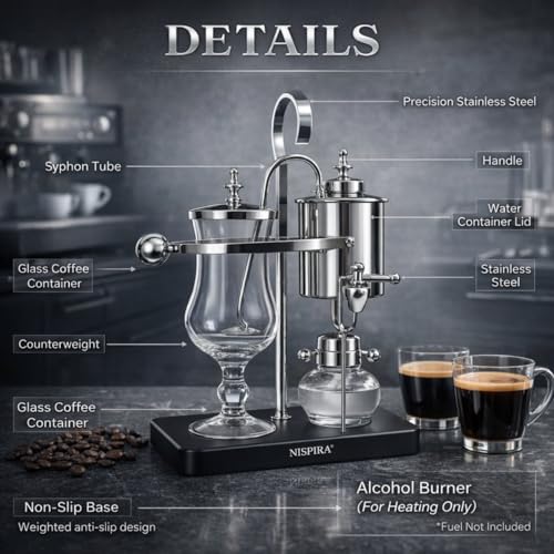 - At amazon.com you can purchase NISPIRA Vintage Belgian Belgium Luxury Royal Family Balance Syphon Siphon Coffee Maker Silver Color for only $135.99