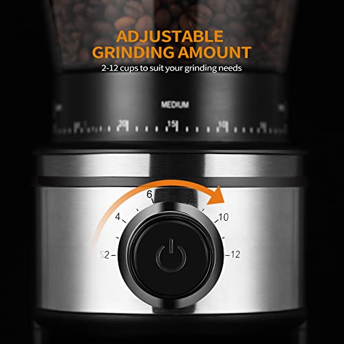 Ollygrin Conical Burr Coffee Grinder, Electric Burr Coffee Grinder with 30 Grind Settings for 2-12 Cups (Black03) (BK04)
