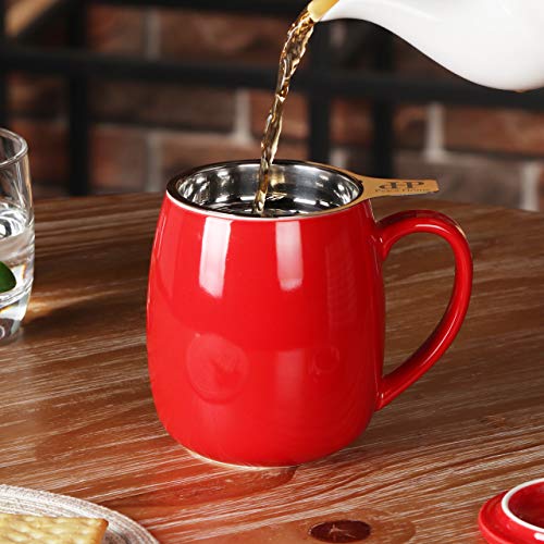 Peacehome Tea Cup Infuser Lid: 17.5 OZ Large Ceramic Tea Mug with Strainer & Cover for Steeping Cup of Hot Tea or Coffee – Fine Porcelain Infuser Tea Mug Set for Work Life Gift (Red) Prices
