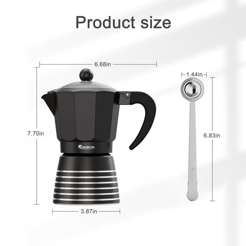 Are you looking for RAINBEAN Stovetop Espresso Maker 6 CUP ,Aluminum Moka Pot Gift Set for Christmas, Italian Cuban Greca Coffee Maker Easy to Use & Clean, Black Espresso Percolator Aluminum Durable, with Two 8oz Ceramic Coffee Cup & Stainless Spoon?