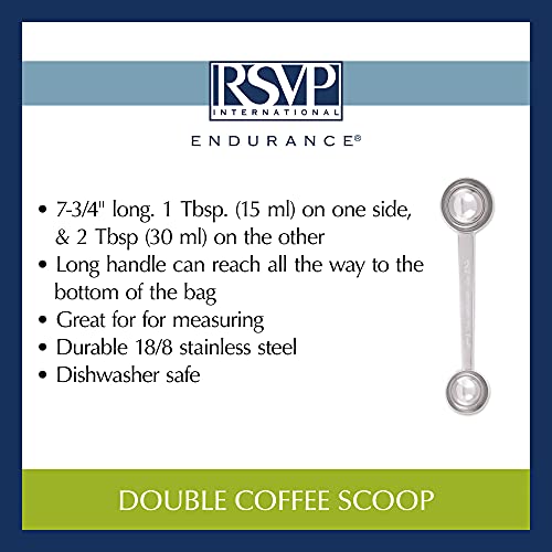 - The lowest price of RSVP International Coffee Scoop Collection, Double, Stainless Steel was obtained on February 14, 2026 20:11.