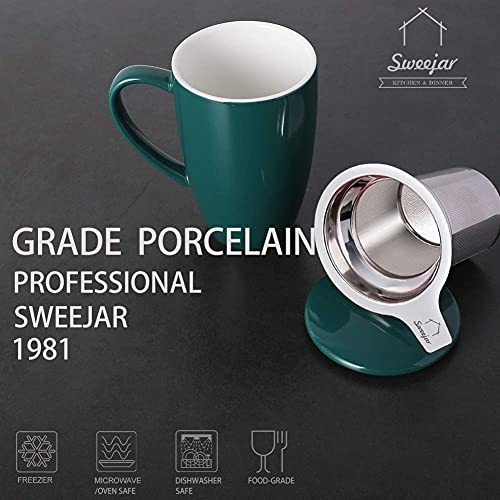 SWEEJAR Porcelain Tea Mug with Infuser and Lid,Teaware with Filter, Loose Leaf Tea Cup Steeper Maker, 16 OZ for Tea/Coffee/Milk/Women/Office/Home/Gift (Jade)