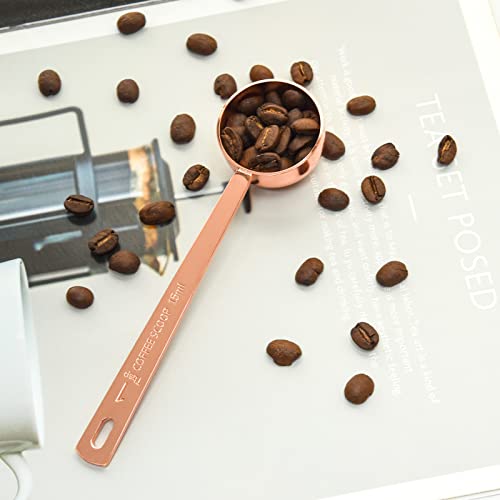 Timoo Coffee Scoop Tablespoon Measure Spoon for Ground Coffee Premium Stainless Steel Long Handle Tablespoon Scoop for Coffee, Milk Powder, Fruit Powder, Rose Gold Set of 5