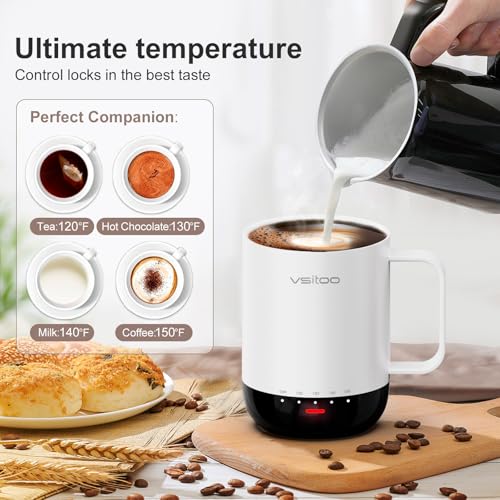 - 【AI Heating & Smart Operation】This self-heating coffee mug features a built-in AI sensor that automatically starts heating when it detects your drink. You can also adjust the settings via the Vsitoo app or with a single-touch button. This smart coffee mug with temperature control is easy to use and makes your daily life easier and more convenient.